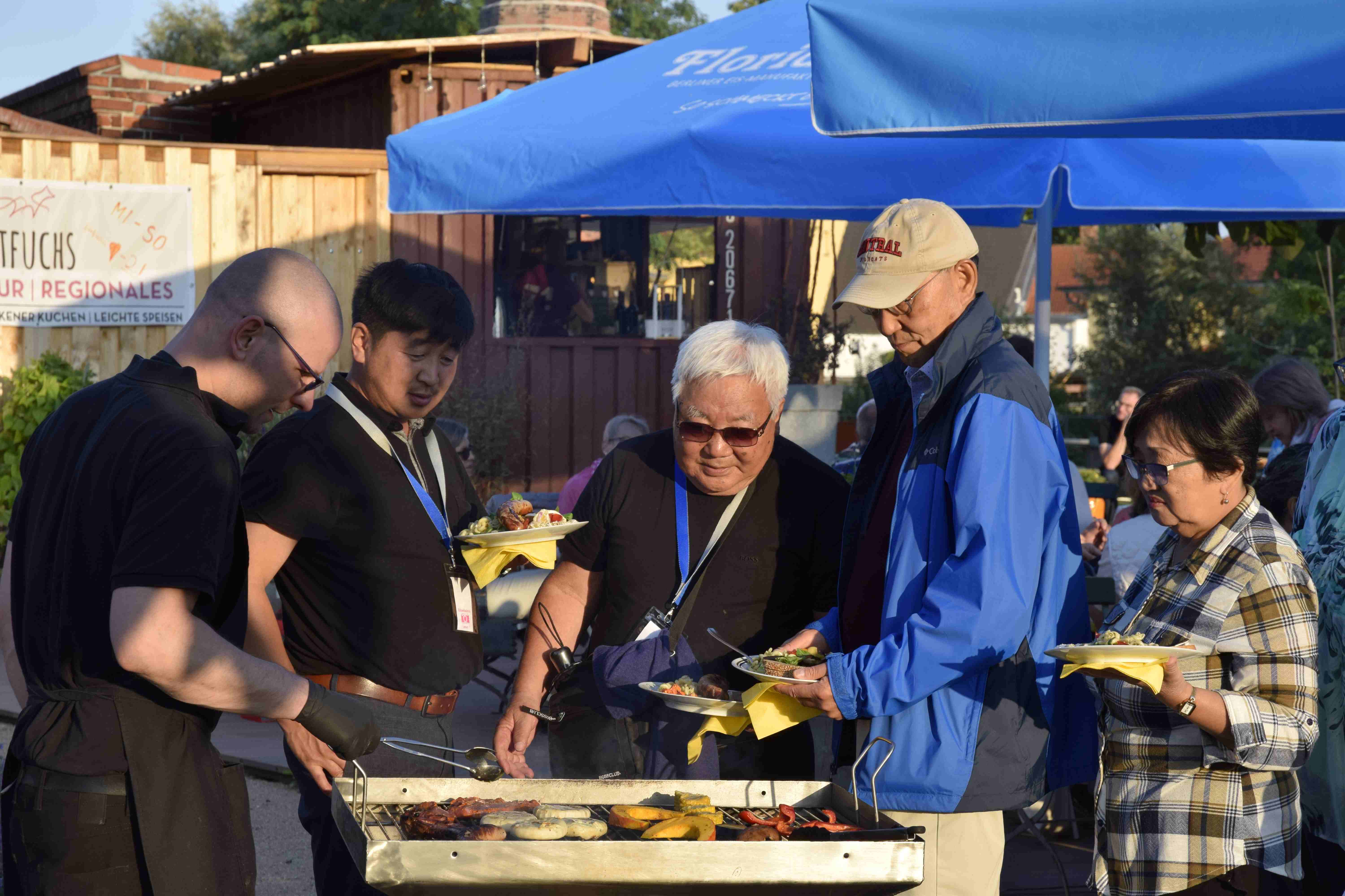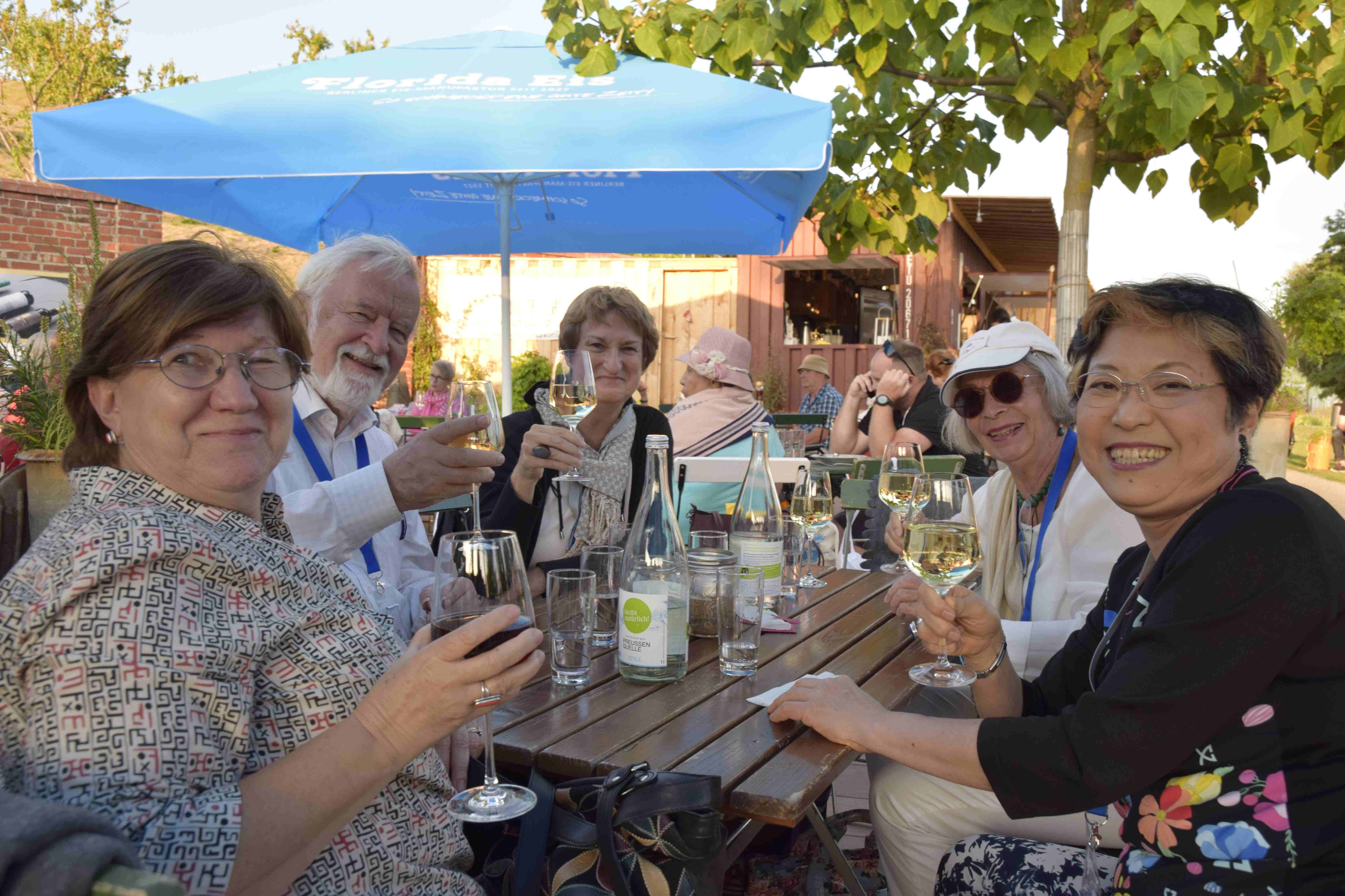- Rodica Pop, Hartmut Walravens, Christine Bell, Barbara Kellner-Heinkele and Junko Miyawaki-Okada enjoy the evening at the vineyard of Burg.